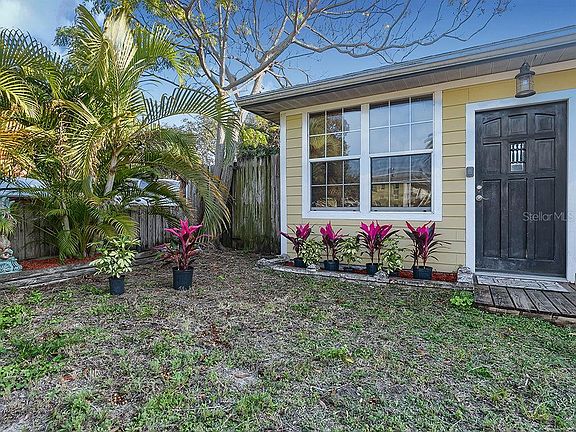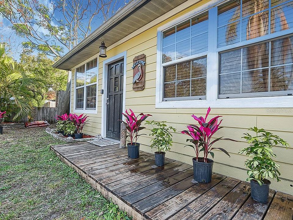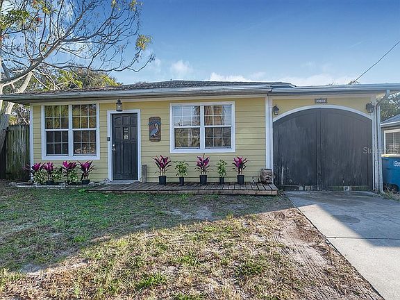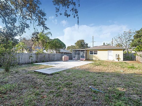Clearwater Dunedin Line. Three blocks to the water! Come see this 2 bedroom, 1 bathroom ranch. House with a lot of potential possibilities to become a 3 bedroom, 2 bath home. Kitchen has grante counters, large breakfast bar and newer wood cabinets. Newer appliances in kitchen. A large bedroom and bath area needs to be finished into a master suite! Oversized, fenced backyard with a large pad for a gazebo or pool. Great location to everything! Short distance to the Pinellas trail for a great biking experience. One photo has been virtually staged.