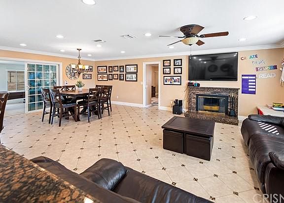 Highly desired open floorplan and updated throughout* Great room feeling offers a living room with a gorgeous fireplace and is open to the dining area* Kitchen is superb and has gorgeous white cabinets all the way to the ceiling, white appliances, granite countertops & breakfast bar with pendant lights, and a large walk-in pantry* The garage conversion offers a second primary suite has dual mirrored wardrobe closets, door to the outside, and a private full bathroom including a separate soaking tub, and a 2 person shower* Original primary bedroom has a private full bathroom, dual closets, and a vanity area* 2 more spacious bedrooms plus another full bathroom* Enclosed patio with slider to the backyard offers an additional 448 square feet (not included in the sf listed. With it, there is over 2200 sf of living space) for entertaining, game room, or exercise room* Additional features include newer windows, smooth ceilings with recessed lights, crown molding, and a whole house fan* Large back and side yards offers grassy play areas, storage shed, and endless possibilities* Truly a move-in ready home***