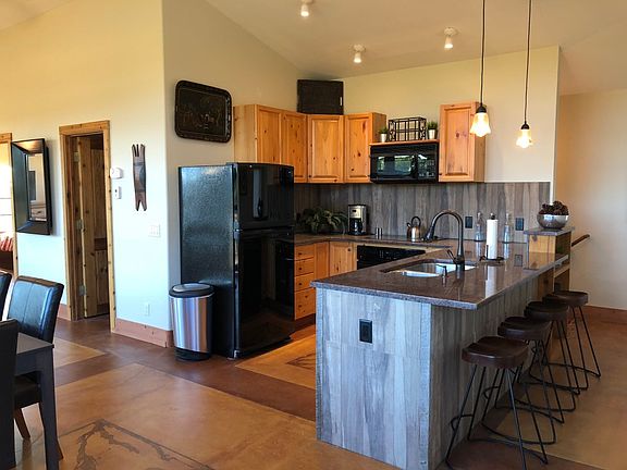 Fully furnished home with an open floor plan, 2 living spaces, vaulted ceilings, generous sized bedrooms, radiant floor heating, generous southern facing windows with private views located on 3-1/2 acres.