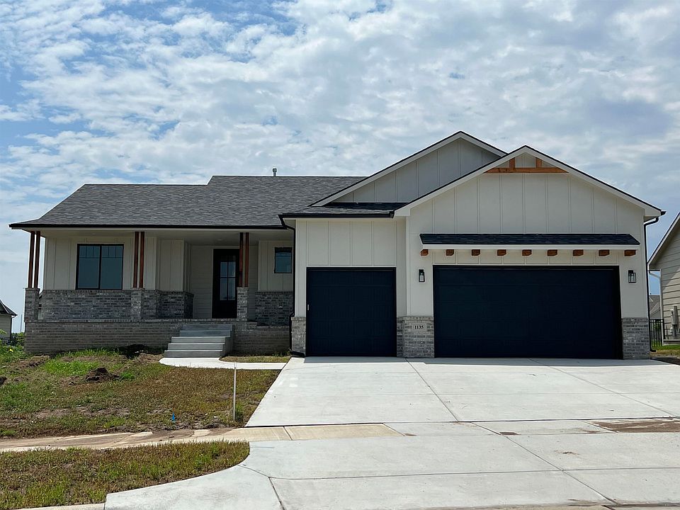 **The second picture is an artist rendering of what the exterior elevation could look like. There may be time to make exterior selections so call to find out the stage of construction! This is award winning layout is being built in Arbor Creek on a nice corner lot next to a berm, this mid-level walk-out home features a gorgeous front elevation with black windows and gabled roof. Entering the home you will find an open living room kitchen design. There is plenty of windows for natural lighting, shiplap at the electric fireplace, floating shelves and upgraded flooring. Keystone has upgraded the kitchen with painted cabinets, under counter lighting, tall cabinets, soft close drawers, decorative exhaust at the hood and today's style hardware on cabinets. This plan is a mid-level walk-out basement to a concrete patio. You will find that this home has upgraded features to include high efficiency HVAC, garage door openers, tall vanities, upgraded door hardware, granite counter tops, wash sink in the laundry and so much more! Some information is estimated and cannot be guaranteed. Options and pricing are subject to change without notice. Call for stage of construction and estimated completion date. 2023-09-24