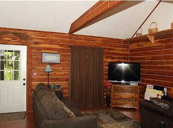 LOVELY LOG HOME in a wooded setting features 2 bedrooms and a loft bedroom, 1 1/2 baths, huge great room consisting of living area, kitchen and dining area and a full finished walk-out basement. Sitting on 4 acres, this home has a wrap around porch with beautiful views all around of fruit trees & wildlife. There is a detached 20' x 20' garage as well as a detached 32' x 34' garage...lots of room for vehicles, "toys" & hobbies. This super clean, adorable home is ready & waiting for your viewing!