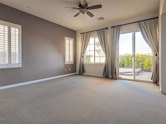 This beautifully updated 3-bed, 3-bath home is set in a highly coveted Summerlin location, just minutes from Downtown Summerlin’s shopping, dining, and entertainment. Positioned on a large cliff-edge lot, it offers expansive south-facing views, granite countertops, built-in stainless appliances, an eat-in kitchen, and low-maintenance landscaping. The spacious primary suite features an office nook, jetted tub, and a huge walk-in closet. Additional highlights include a Jack & Jill bath, extra garage storage, and community pool and park access. Recent updates: water heater (2025), exterior paint (2024), water softener (2024), irrigation system (2024), washer (2024), microwave (2023). Zoned for highly rated schools and near Red Rock Casino, the Golden Knights facility, and Aviators Stadium