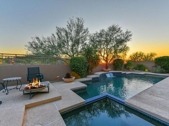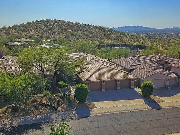 Stunning SUNSETS. Twinkling CITY LIGHTS. Majestic MOUNTAINS. Perched high above the Valley, views abound! Compact low maintenance yard with South backyard exposure with lots of light and wintertime warmth makes this an ideal lock and leave, or full time home, in Scottsdale's premier guard gated community. Gourmet kitchen with professional series stainless steel Sub-Zero, Viking and Bosch (Oct19) appliances. Patriot PCO whole house air purification system. Plantation shutters throughout. New exterior paint (Oct19). Open concept great room floor plan features 12 foot ceilings. Spacious master, three more bedrooms, and den. 3.5 baths. Easy no-turn access three car garage. Pebble finish pool with in floor cleaning system. Walk to tennis, heated spa, and fitness center.
