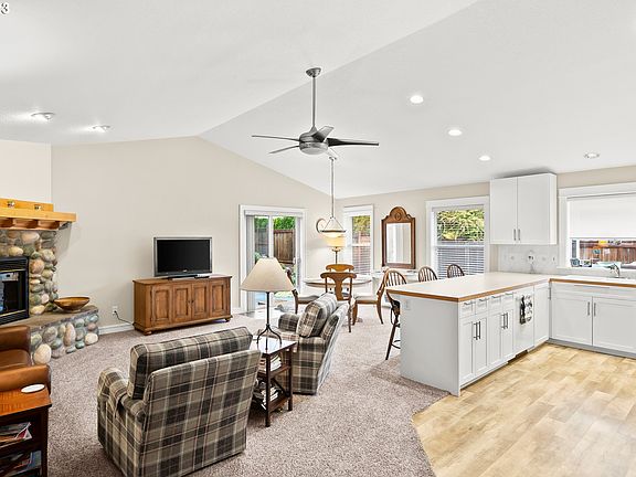 Immaculate one level on large lot! Gated RV parking. New roof in 2021. This meticulously cared for home is move in ready. Tile entry. Great room floor plan with gas fireplace. Spacious kitchen with LVP flooring, large breakfast bar. Dining area with slider to backyard. Den or office with beautiful built in bookcase. Den has no closet but could be guest bedroom or bonus area. Newer carpet. Spacious primary suite with walk-in closet & bathroom with 2 sinks plus walk-in shower. New hot water heater in 2017. Extra deep 2 car garage with 220 electric for shop usage. Garage wired for standby generator. 40' long x 18' wide RV pad with 30 amp RV outlet. Incredible backyard with patio, new fence, professional landscaping, water feature, irrigated raised garden beds, walking paths. Perfect starter home or downsize. This home is a gem.