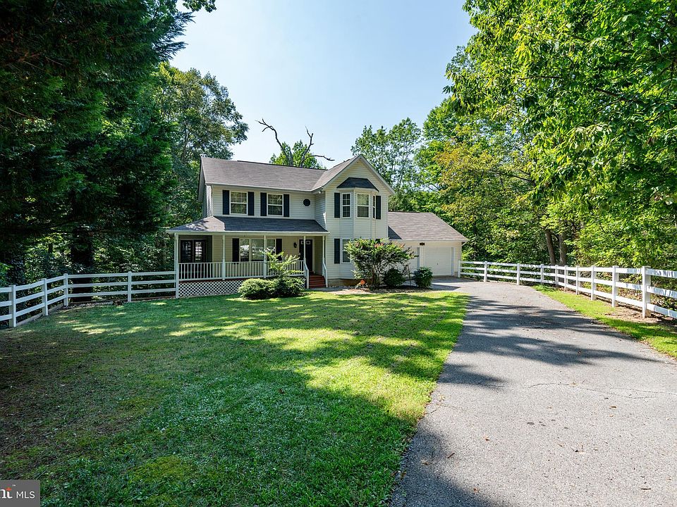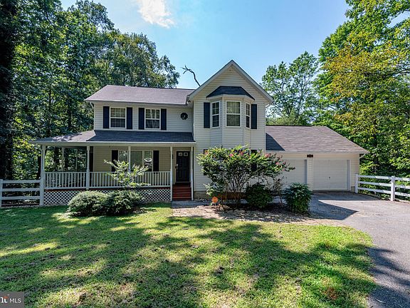 Tucked away at the end of a cul-de-sac, you will love the secluded feel of this three level Colonial that backs to trees. Enjoy the covered front porch that wraps around the side of house or the multi-level decks overlooking your private and wooded backyard. Main level features a living room, formal dining room, kitchen open to family room plus breakfast room space. Family room features wood burning fireplace for a cozy feel. Upper level has three bedrooms including primary suite with cathedral ceilings, private en suite bathroom and walk in closet. Finished basement offers plenty of space with large rec room perfect for a 4th bedroom, second living area, home gym, or entertainment space and also includes a full bath! Laundry is also found on the lower level and walk out to another level of the rear decking. Updated LVP in basement and carpet on upper level. Water and sandy beach access included and easy commute to all the local companies and base. Close to shops, restaurants and more!