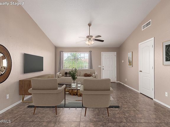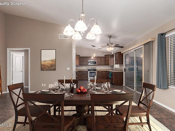 This beautiful east mesa home is turn key and move in ready! This 3 bed 2 bath, split floor plan home offers: New energy efficient AC (2020), new gas water heater (2024), new interior paint, updated kitchen with soft close cabinet drawers, granite counter tops, updated light fixtures, water softener & RO system, tile throughout entire home, no carpet, open floor plan, recently added additional AC duct into master suite to maintain efficiency, patio was enclosed to add a bonus room, master ensuite offers separate tub and shower, new vanity, & HUGE walk in closet! In the garage you will find a Werner access ladder giving access to attic space for extra storage. Low maintenance, easy care landscaping, built in 10x10 storage shed. Come see this home and make it yours!