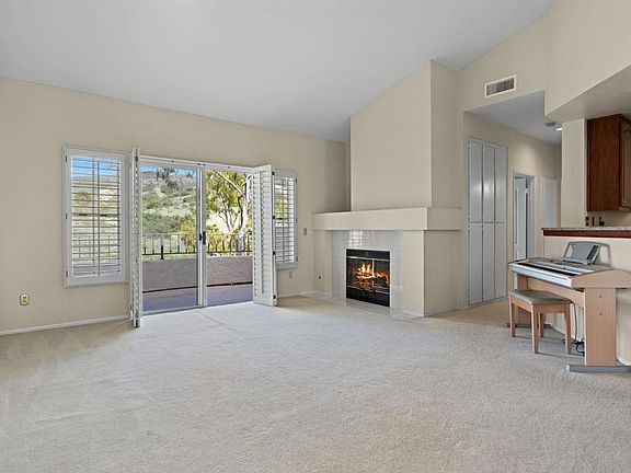Welcome to 11352 Portobelo Unit 8, a beautifully updated 2 bed, 2 bath condo nestled in the desirable Belsera community. With sweeping views of Mission Trails Regional Park, this upstairs corner unit offers privacy, light, and a strong connection to nature—all just minutes from the heart of San Diego. Step inside to discover soaring vaulted ceilings, an open-concept living space, and clean finishes. The living room is bright and airy with a cozy fireplace, perfect for relaxing evenings. Large windows and sliding glass doors open to a spacious private balcony, ideal for morning coffee or sunset wine with a canyon breeze. The kitchen features clean brown cabinetry, stainless steel appliances, and a breakfast bar, flowing seamlessly into the dining area. Both bedrooms are generously sized, and the primary suite offers a large walk-in closet and dual-sink vanity with serene views of the hillside. Additional features include washer/dryer in garage, an attached 1-car garage with interior access, and a second assigned parking space. The Belsera community offers resort-style amenities including a pool, spa, BBQ areas, and direct trail access to Mission Trails. Whether you’re an outdoor enthusiast, a first-time buyer, or someone seeking low-maintenance luxury, this home checks all the boxes.