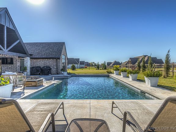 Stunning Executive Home on half an acre with beautiful in-ground pool. Contemporary finishes including wood floors throughout, quartz countertops, built-in cabinets flanking the rock fireplace, beams, and total privacy with a completely split bedroom floor plan. Office or fourth bedroom with closet by entry. Open kitchen and living, cozy den off eating area with storage closet. Large pantry and half bath. Primary suite with access to back patio, large bathroom and dream closet accessible from laundry . Three car side entry garage and private second patio. Resort style backyard With expensive covered patio with in-ground pool, landscaping and fully fenced yard.
