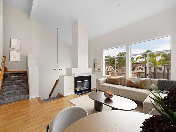 Welcome to this bright and spacious 2+ bed, 2 bath corner unit featuring a versatile loft that can easily serve as a third bedroom, home office, or bonus space. Ideally located right next to the pool, this home offers an open floorplan with soaring high ceilings, creating an airy and inviting atmosphere throughout. The living room is the heart of the home, complete with a cozy fireplace and tons of huge windows that flood the space with natural light. The adjacent kitchen boasts newer stainless steel appliances, plenty of cabinet space, and seamless flow into the dining and living areas—perfect for both entertaining and everyday living. Step out onto your private balcony to relax or enjoy a morning coffee. The large primary bedroom features an ensuite bathroom and generous closet space, while the secondary bedroom and upstairs loft provide plenty of room for family, guests, or work-from-home flexibility. Additional highlights include a 1-car garage and a prime location close to schools, shopping, dining, and easy freeway access. Don’t miss the opportunity to own this beautiful, light-filled home in a highly desirable community!