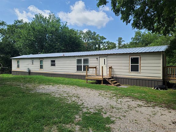 Back on market through no fault of seller. Seller will consider removing mobile home with acceptable offer. If you are looking for seclusion, this is it! 1200 square foot manufactured house with 24'x20' (m/l) metal out building on slab. Additional shed included. New vinyl windows, new deck accessible from master bedroom, newer A/C unit and septic tank. Shop has water and electricity. Propane tank is available but not currently installed. Includes a full ten acres of wooded land for future expansion. Less than three miles from Blue Creek Campground on Lake Oolagah.