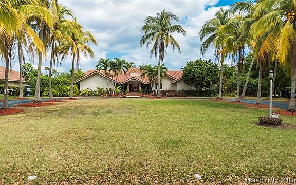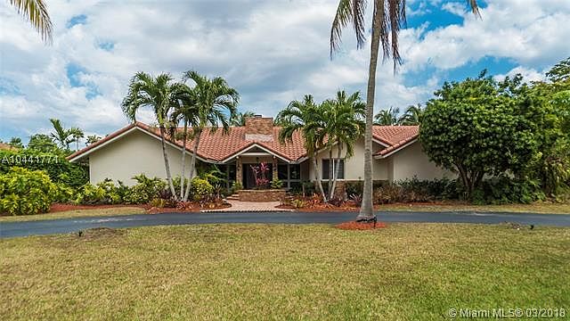 Stunning 4/3.5 one story home located on over an acre in the Falls area. This gem features spacious eat-in chef's kitchen with island, granite counter tops, wood cabinets, built in wine cooler and stainless-steel appliances. Formal dining and living area with tile throughout. Vaulted ceiling in living room a white brick fireplace in oversized family room. All bathrooms have all been tastefully updated with no expense spared. Spacious master bedroom with his and her closets. French doors lead you out to a tropical oasis that features pool, tiki hut, bar, lush landscaping and tennis court. Perfect space to entertain friends and family. Front of home is an entertainer's dream with an expanded driveway with plenty of room for parking. Terrific home for a large family. A must see to appreciate.