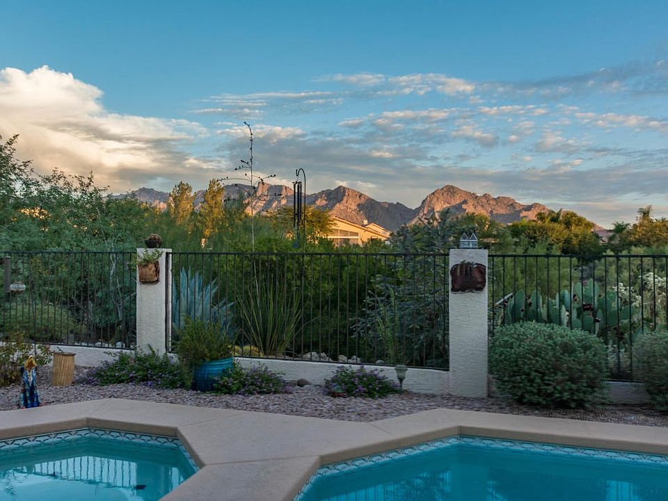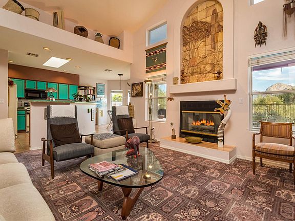 VIEWS! VIEWS! & MORE VIEWS! East facing backyard with incredible mountain views & common area behind! Spectacular wildlife corridor & birding opportunity right from your backyard. This home offers stunning details inside as well. This artistic home has vaulted ceilings, plant shelving, niches & custom lighting to allow for massive displays of art & sculptures! lots of light fills this home. Flooring: wool carpet, ceramic tile & cork flooring. Most cabinets have roll-outs in bathroom, kitchen & dining. Custom features include: bidet, dining room cabinetry & buffet, boss relief tile work above FP in great room. 3rd bay of garage currently used as art studio-can be converted back to 3rd bay.