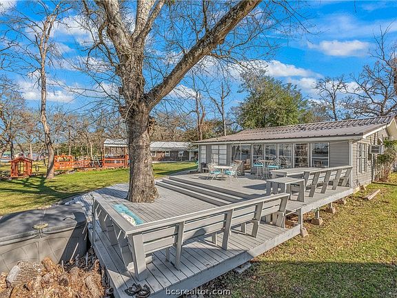 REDUCED MOTIVATED SELLER!!! Camp Creek Lake Front property for sale! This well maintained property has all of the qualities of peaceful settings, lake breeze, wildlife, fishing, and boating. The large 1 acre lot has large trees, concrete parking lot, 576 sqft metal storage building and golfcart path down to the lake. There are 2 RV hookups on the property. New boat dock boast two boat stalls and jet ski stall(another boat slip with lift for pontoon is decked over). There is a great bar built in the boat dock overlooking the lake with some of the best views of the sunsets and sunrises. The 1,366 SQFT/3 bed/2 bath home with central HVAC! Spacious living room with natural lighting overlooking the large porch and firepit. Must See!