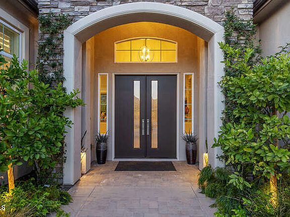 Where comfort meets luxury. Welcome to this Stunning Single Story 4 bedroom, 4.5-bathroom smart home with over 4,000 sqft of living space! Located in the highly desirable gated community of the Masters in Moorpark Country Club, this house is in pristine condition! Gorgeous curb appeal with a paver driveway lined on either side by two 2 car garages. Owned, Whole house solar with backup batteries. Step inside the double door entry to find a sprawling open floor plan with soaring ceilings and custom features. Owners have spent over $700k in upgrades. The great room is flooded with light and features a gas fireplace with a custom-built stone and onyx accents tops. Easily flow into the modern Chef's kitchen which offers a wraparound island made of granite, high-end stainless-steel appliances, and a walk-in pantry. The kitchen offers plentiful dining space either at the breakfast bar or in the lovely breakfast nook. Working from home has never been better than in this beautiful office space found off the great room, with a brick feature wall and a custom built in desk & cabinetry. Retreat to the Master Suite found in one wing of the house. The room is spacious with large windows, a sitting area, and a slider with remote controlled shade to the backyard. The attached ensuite is like a private spa with gorgeous tile floors, expansive vanity, glass enclosed shower, and soaking tub. To top it off the room has a stunning oversized walk-in closet. Each of the 3 secondary bedrooms are found in a separate wing of the house, and they all have a nicely updated attached bath. The separate laundry room includes a sink, Entertaining is a dream - just open the multi slide glass door to allow a seamless flow from the inside to the recently updated backyard. Step outside to your covered patio and follow the custom paver hardscape to the outdoor kitchen/living room that includes a fireplace, television, BBQ, stove, refrigerator and sink! Enjoy the soothing sounds of the water feature that runs down the landscaped hillside and meets the beautiful Patio and plants that surround the yard. No detail has been missed in this move in ready home! Close to great schools, parks, shops, and restaurants. This is one home you won't want to miss!