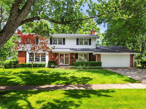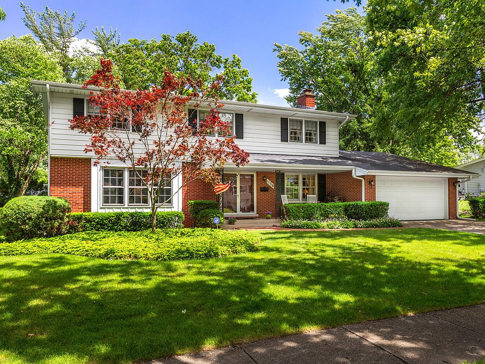 One of a kind two story with inviting front porch and teriffic open floorplan featuring large rooms. Located in desirable Maplebrook subdivision just 3 blocks to Trader Joes, Caseys grocery and more. Beautiful hardwood floors 1st and second floors(some are covered with carpet). Eat in kitchen with stainless appliances, corian countertops and slider to patio and well landscaped backyard. Family room runs the width of the house so you can see front and backyard and features huge windows and a limestone woodburing fireplace. Inviting dinging and living rooms. Large main level office and laundry. Huge master with remodeled luxury bath featuring vaulted ceiling with skylight, adult height vanity and spacious walk in shower. 3 additional large bedrooms up and a remodeled hall bath featuring vaulted ceiling with skylight, dual sinks and bathtub with shower. Unfinished basement with recreation room. Backyard oasis with large patio overlooks mature trees and neighboring yards. Newer mechanicals and roof. Minutes away from downtown Naperville, parks, bike trails, and restaurants. Located in an award-winning school district 203: Elmwood Elementary, Lincoln Middle School, and Naperville Central High School. This home is a Treasure! Roof is 15 yrs old, New high efficiency furnace 2023, Air conditioner 2007, Hot water heater 2012.