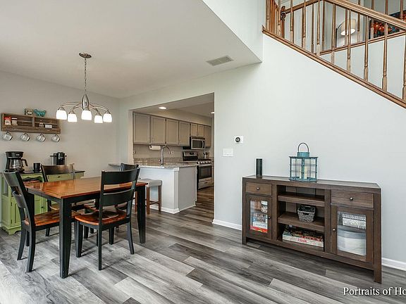 BREATHTAKING VIEWS OF THE POND! BEAUTIFULLY UPDATED 2 BR, 2.1 bath plus loft and 2 car garage townhome in Cobblers Crossing. Check out this Absolutely Stunning sun drenched home with a dramatic 2-story living room with sky lights and a cozy fireplace. Enjoy meals from the dining room that overlooks scenic views of the pond. The kitchen offers grey capinetry, granite countertops, newer stainless steel appliances and a breakfast bar. The bonus room off the kitchen can be used as a formal dining room, office or exercise room. The main level has new vinyl wood look flooring. The enormous owner's suite includes a walk-in closet and a luxury bath with soaker tub and separate shower. The spacious loft can be used as a 3rd bedroom, office or gaming area. This home is tastefully decorated in todays colors. WELCOME HOME!