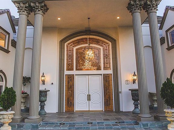 Sitting Up-top Prestigious Via Verde Estates is the gorgeous & completely gated, "Persian Palace," maintaining it all: 7 Beds, 10 Baths, Approx. 12,000 sq.ft. of "custom" elegance crafted w/"top-of-the-line" finishes including: granite, marble, travertine, vaulted ceilings, custom wrought iron railings, draperies, crystal chandeliers, crown molding, recessed lighting, gardens, frescoes, murals, tapestries, built-ins, statues, fountains, fireplaces, & 4 Car Attached Garage -- All on 70,191 sq.ft. of land. Main level includes library/study, formal living, family, dining, and powder rooms, chef's gourmet kitchen w/island & breakfast area, & maid's kitchen. Two spiral stair cases lit by stain glassed cathedral ceilings lead to the 2nd floor maintaining a master retreat featuring oak floors, dual walk-in closets, baths, & vanities on polished travertince floors w/steam showers, jacuzzi tub, & more. Wonder out to additional ensuited bedrooms separated by a multipurpose/laundry room, leading out to an elegant upstairs patio w/fire-pit perfect for entertaining. The mature & well manicured grounds include fire-pits, covered-patios, gazebos, fruit orchard gardens, large Olympic pools & spas, & horse stables. Too much to list. Definitely a must see to appreciate!!!