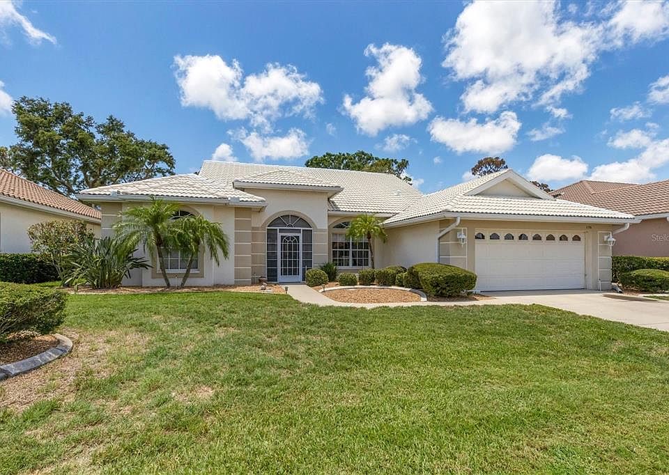 SPACIOUS OPEN VIEWS OF POOL, YARD, TREES, GOLF COURSE and LAKE. 3BD/2BA great room floor plan. Lots of space in this beautiful, well maintained original owner home. Nice and bright with tons of windows and sliders, plus Sunset exposure for spectacular views. Large lanai with plenty of room for various options, dining table, sitting area, and plenty of lounging space all around your own PRIVATE POOL. Kitchen offers tons of wood cabinets and Corian counter space. 2 large pantries and desk space. Large breakfast nook overlooking the pool and view. Bar counter for eating or entertaining. NEWER Stainless Steel appliances. Separate dining room for more formal occasions. Split floor plan. Extra spacious master bedroom with lounging alcove for reading or relaxing. En-suite master bath with dual sinks, walk in shower, and Jacuzzi tub. Walk in closets. Guest bedrooms on other side of home for privacy can be closed off with pocket door , guest bath between. PROPERTY HAS BEEN RE-PLUMBED. AC 2022. Pelican Pointe is Venice's Premier community offering resort style amenities including Clubhouse with bar/grill, card room/library, and banquet facilities. Heated pool with lap lanes for swimming, fitness center, tennis courts and pickle ball, tons of sidewalks for enjoying the weather throughout the community, and 27 holes of golf with Pro Shop. Tons of social opportunities for non golfers, including trivia night, special occasion activities, and huge Women's association. Golf is NOT mandatory. All of this Centrally located minutes to Venice Beach, Venice Downtown, shopping, theatres, restaurants, highways, airports, and so much more. Venice is the quaint gem you have been looking for on the West Coast. 3D WALK THROUGH AT: https://my.matterport.com/show/?m=RRTWEiy3DpZ See this home and find YOUR Florida Lifestyle today.