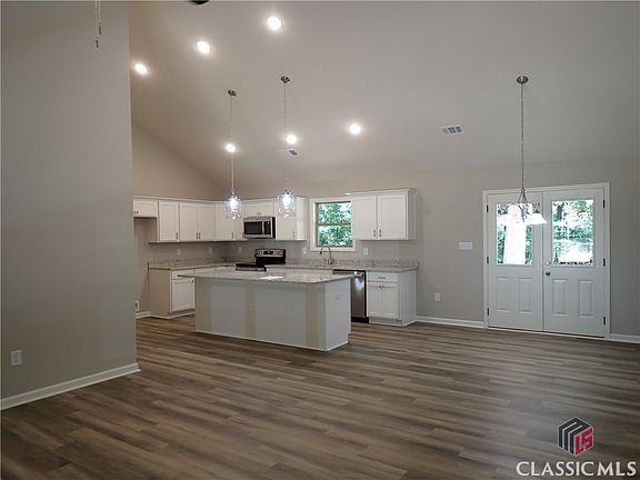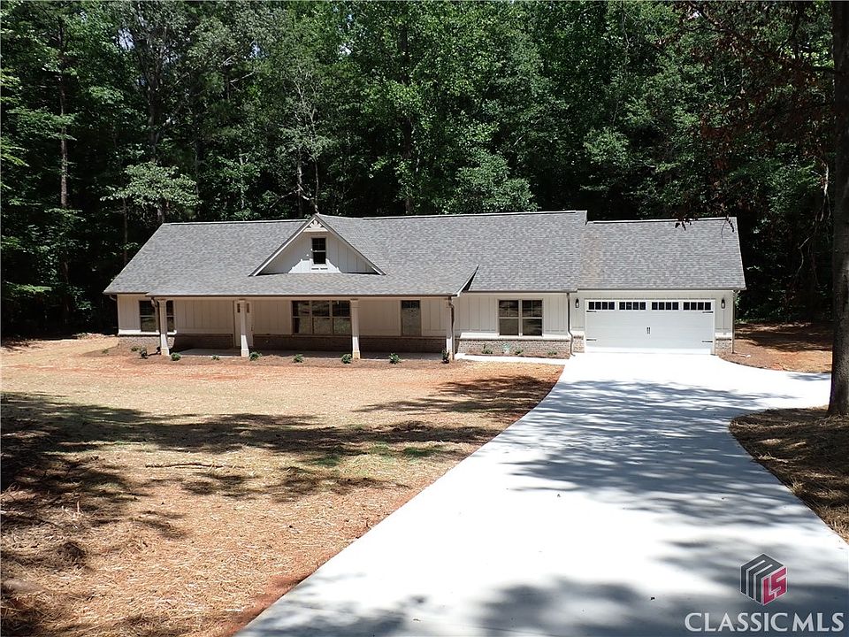 Hard to find, brand new stepless ranch on 1.67 Acres!! This home features a vaulted family room that opens to the kitchen and breakfast area. Kitchen has tons of cabinets, stainless appliances, granite countertops and a HUGE island! Extra large walk in pantry also. Split bedroom plan. Master bath with separate his and her vanities. Laundry room. Very nice rocking chair front porch and covered back patio that overlooks wooded, private back. Convenient to Athens and Jefferson. No HOA! If you are looking for a little elbow room, this could be the home for you.