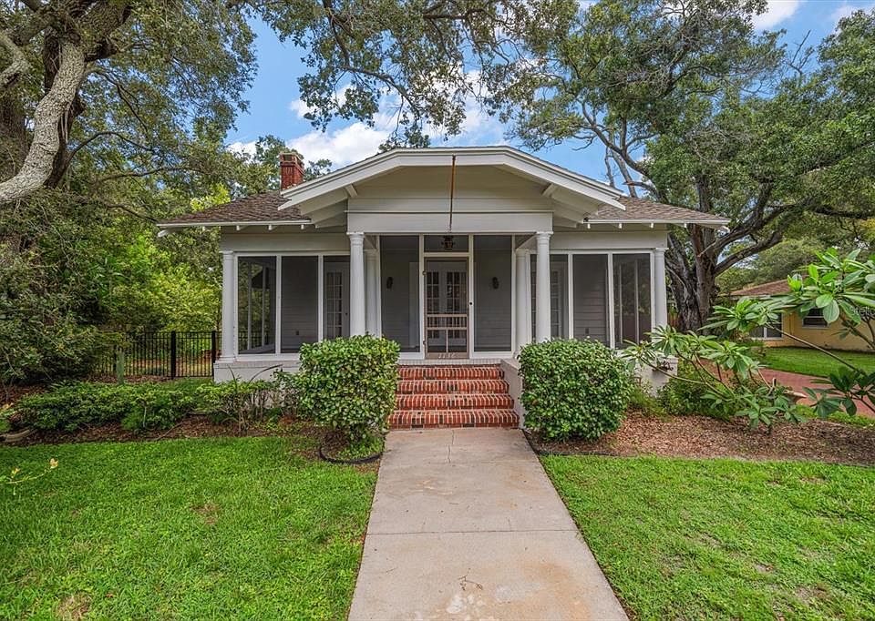 Welcome home to this true Craftsman Bungalow. Built in 1926 and nestled in the historic Country Club area of Clearwater, just a stones throw from downtown. This charming residence has been lovingly maintained, preserving most of its original features, which beautifully showcase its rich history and character. Step inside to find classic architectural details that have stood the test of time, from the original hardwood floors, front and side screened porches, elegant built-in cabinetry, and vintage light fixtures. Spacious living areas, with high ceilings exude warmth and nostalgia, providing a perfect blend of historic charm and modern comfort. The kitchen, while retaining its natural charm, offers modern appliances and conveniences. The home sits on a large lot with a graceful oak tree and a detached garage, allowing plenty of room for a pool. The attic is finished and is a perfect play room, studio or at-home office. The Country Club area is known for its historic homes and tree-lined streets, and its convenient location, located just blocks from Downtown Clearwater (enjoy beautiful Coachman Park and the events at The Sound), and Clearwater Country Club. This is a rare opportunity to own a piece of Clearwater's history--don't miss your chance to experience the charm and character of this remarkable home, which has been owned by the same family since the 1960's.