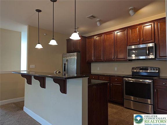 Fantastic 2nd floor, open concept condo in Mountain Park. Kitchen features, 42" cabinets, granite countertops, center island with seating for 4, stainless appliances, closet pantry. The kitchen is open to the great room with access to covered balcony with nature views. The master bedroom impresses with vaulted ceiling, Palladian window, large walk in closet, large tiled bath with double granite vanity, wide walk in shower and private toilet. 2 additional bedrooms and full bath complete this outstanding floor plan. Seconds to 78, Lehigh University ( walk to Lehigh's athletic fields). Minutes to St Luke's and Lehigh Valley Hospitals. 2 Pets permitted on a case by case basis. Dog weight limit is 65lbs per the HOA. Cats must be spayed with documentation.