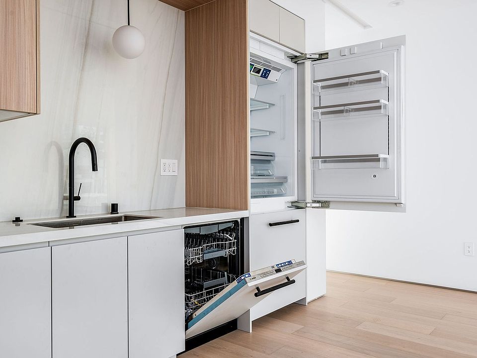 The Samson offers a curated mix of one-bedroom, one-bedroom with powder room, and two-bedroom, two-bathroom residences. Each home is thoughtfully crafted with solid hardwood flooring, recessed LED lighting, custom-fitted closets and cabinetry, and sleek, designer-tiled bathrooms. Gourmet kitchens showcase Bosch appliances and quartz countertops, blending timeless elegance with modern function.