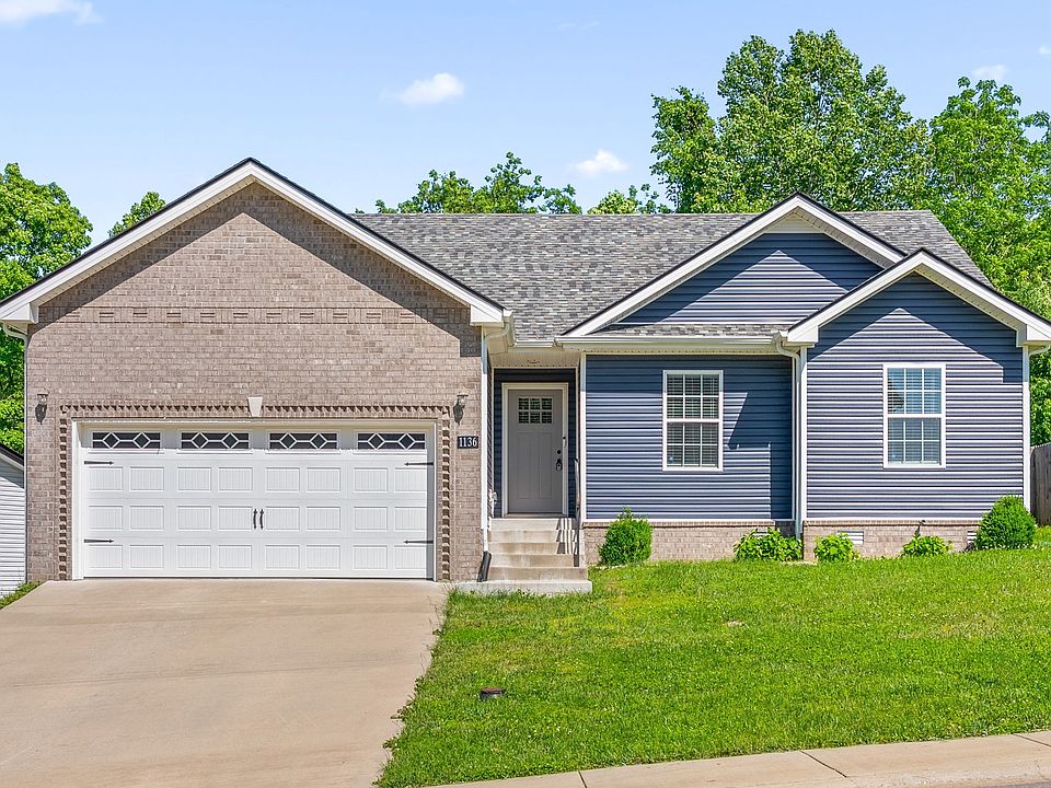 Step inside this stunning 3-bedroom, 2-bath single story home in the highly desired SANGO community and see why it’s the one you’ve been waiting for! With vaulted ceilings, an open-concept layout and a picturesque wooded view, this move-in-ready gem feels even more spacious in person! Built in 2020, the home features a beautifully designed floorplan with an airy living room & open kitchen with stainless steel appliances, a center prep island, gorgeous cabinetry, and sleek granite countertops. The oversized primary suite has a beautiful tray ceiling, en-suite bath with double sinks and custom tiled shower. Across the home, you'll find two additional spacious bedrooms with plenty of storage and a full bath. Step outside to the covered back deck, located just off the kitchen and dining area, perfect for grilling and enjoying the serene wooded view. This property offers serene surroundings with easy access to I-24, Ft. Campbell (~15 mi), Nashville (~45 mi to Nashville), and parks (Rotary Park ~2 miles). This home provides easy access to everything you need!