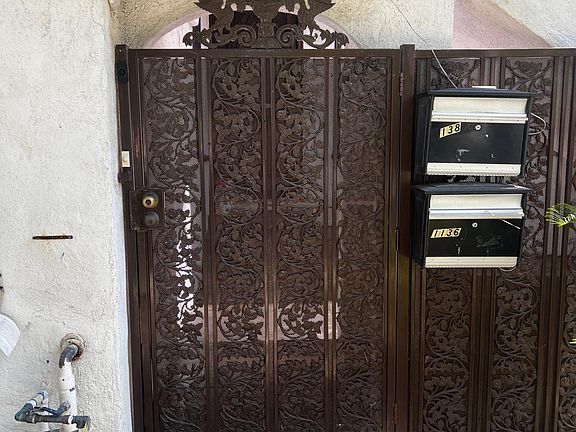 Architectural beauty with private gated courtyard, electric driveway gate plus parking in garage & driveway. The property is the ground floor of a duplex in a quiet neighborhood. Pets are allowed (call for details). The unit has an updated kitchen with breakfast nook (including cushioned storage bench), granite counters, stainless steel appliances and several extra storage cabinets. Living room has a working fireplace. Large formal dining room with beautiful chandelier. Ensuite primary bedroom has a large sunken tub. The other two bedrooms are large with walk-in closets. Wood framed interior doors have frosted glass inserts for light to shine through. Energy-efficient LED lighting and tankless hot water heater. Hospital grade air scrubber in HVAC system. Wired for data (CAT-5 in every room). Interior painted June 2025. Back yard has patio with pergola, fruit trees (apple, orange, peach), plus a raised planting bed for your own veggie garden. Walk to LACMA, public transportation, shops, restaurants and more from this quiet street in a well-established neighborhood! Long driveway can be used for multiple vehicles. Two-car garage is intended for one vehicle to use on a regular basis with a second vehicle ok for long periods. Rent includes onsite parking, water, sewer and gardener. LEASE DURATION: 1 year, 2 years or 3 years. RENT INCLUDES: Water, sewer and gardener. First month's rent and security deposit due at signing. INCLUSIONS: Washer/Dryer, Refrigerator, Range, Microwave, Dishwasher. PARKING: Long driveway can be used for multiple vehicles. Two-car garage is intended for one vehicle to use on a regular basis with a second vehicle ok for long periods. PET POLICY: See listing or call for details.