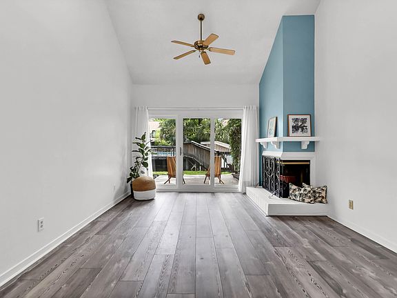 Wood-burning fireplaceCommunity poolRunning fountainOpen loft areaCharming gardenBright open layoutOak canopied roads