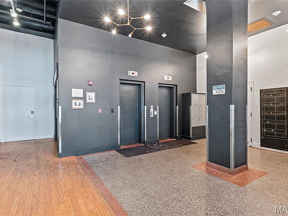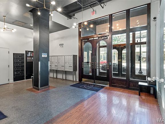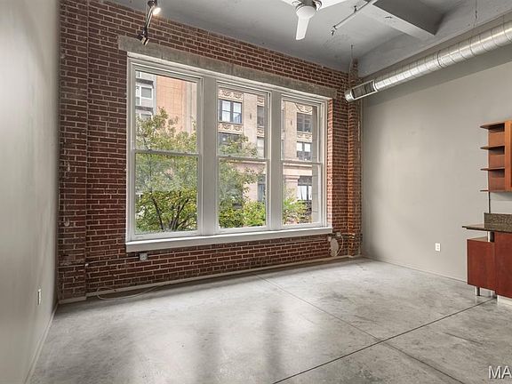 Welcome to Meridian Lofts! Located in the heart of downtown St. Louis, on one of the most popular stretches of Washington Avenue. Neighboring an endless list of food & fun right out your front door! This 2nd floor corner unit exemplifies loft-living with soaring high ceiling heights, polished concrete floors and a massive exposed brick wall filled with windows overlooking Washington Avenue! This total package unit features an ideal open yet functional layout, with lots of natural light flowing throughout. Meticulously maintained by the original owner with updates including: new refrigerator (2025), new HVAC (2019), new garbage disposal (2025) and a fresh coat of paint throughout. Unit includes 1 assigned parking space in LL attached garage (best for smaller vehicles). Building special assessment covering several big-ticket expenses has been paid in full by the owners with no balance transferring to the new owner! Unit has been a successful rental income property since 2008 and can either be owner occupied or continue as a LTR (no STR permitted).