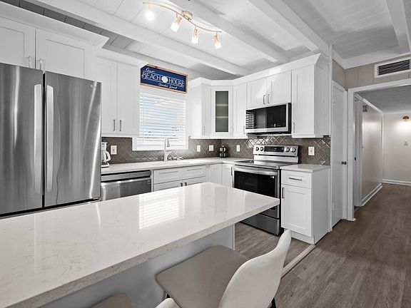 October-December 15th! This furnished three-bedroom, two-bath residence is situated in the heart of Beach Town, just 3 miles from the bridge. Enjoy close proximity to shopping, grocery stores, and stunning white sand beaches.