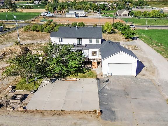 Dont Miss Out on This Rare Opportunity! This incredible property offers 2 parcels sold together as one, totaling 7 acres and 14 shares of water. The home has been completely remodeled inside, with only the kitchen left to finish. The spacious Master Suite includes a large bedroom, sitting area, oversized closet, and private bathroom. Step outside onto the master deck and take in endless views of green hay fields, mountains, and wide-open-skies, fresh country air that will make you want to stay forever. The open floor plan fills the home with natural light and breathtaking views from every window. The basement features a large apartment with it's own private entrance, perfect for guests, rental income, or multi-generational living. Out front you'll find 22 fruit trees, while the land behind the home is farmed in alfala, ideal for those who Love a rural lifestyle. With 5.25 acres for the home plus an additional 1.75 acre parcel, this property is a true once in a lifetime opportunity. Dont let your dream home slip away. Square footage figures are provided as a courtesy estimate only.. Buyer is advised to obtain an independent measurement.