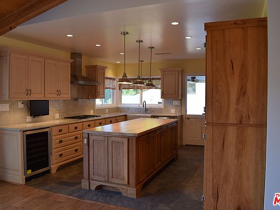 Stylishly renovated single story 3+3 home with Canyon Views & Indoor-Outdoor Living. A warm foyer that opens to a warm and inviting living room/den, featuring wood-beamed ceilings, rich hardwood floors, and floor-to-ceiling glass doors that flow onto a wraparound deck and landscaped backyard. Perfect for entertaining, the open-concept layout connects the living room to a spacious dining area and a thoughtfully updated cook's kitchen complete with a butcher block island, Thermador convection ovens, wine refrigerator, and abundant storage. Start your mornings on the peaceful patio, taking in sunrise views with your coffee. The primary suite includes an ensuite bath and sliding doors that open to the patio, while two additional bedrooms share a well-appointed bathroom. Additional features include a one-car garage, and adjacent parking for a second vehicle. A tranquil retreat just moments from the city ready to welcome you home.