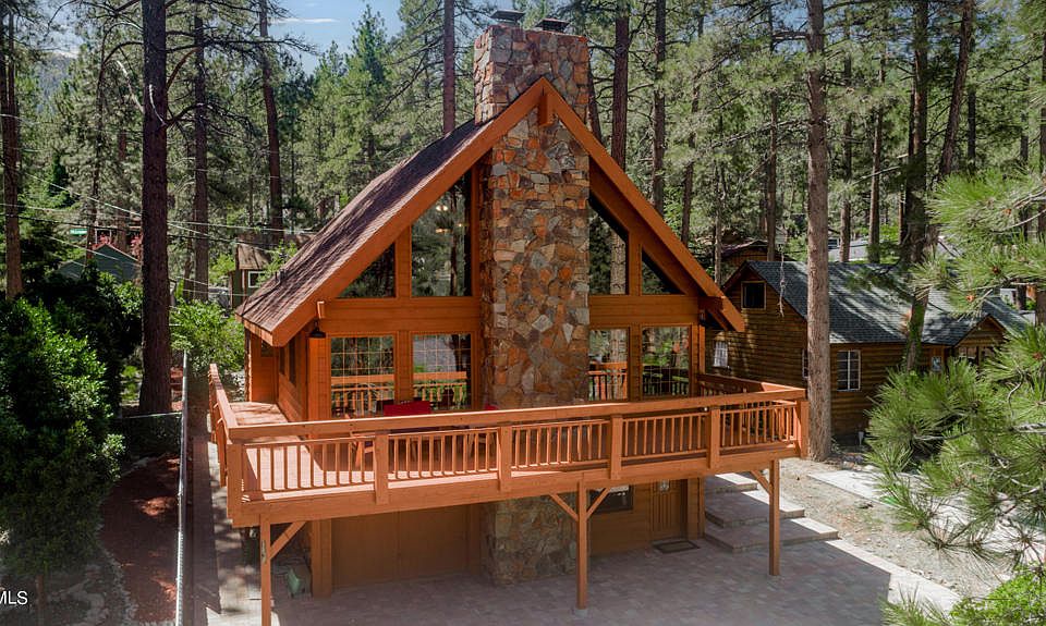 Welcome to 1137 Edna in Wrightwood, CA, where spacious living and mountain charm meet in this nearly 3000 square foot mountain retreat. This unique tri-level home offers versatile living spaces and breathtaking mountain views. The middle level serves as the heart of the home, featuring two cozy bedrooms with access to a shared deck, perfect for enjoying the crisp mountain air. A full bath, well-appointed kitchen, and a dining room provide comfort and convenience. The great room is the true centerpiece, adorned with an abundance of windows that bathe the room in natural light. Its dramatic A-frame high ceiling draws your eyes upward, while the fireplace adds warmth and ambiance. Step outside onto the large deck, where you can savor the stunning mountain views, making it an ideal spot for relaxation and entertaining. The top level boasts an open loft with built-in bookshelves, creating a charming reading nook that overlooks the great room below. Additionally, you'll find a sprawling master bedroom, complete with a private deck, built-in cabinets, a walk-in closet, and an en-suite bathroom featuring a separate shower and a jetted tub. This level offers a serene retreat with ample space to unwind and rejuvenate. The bottom level of the home is a versatile space, perfect for various needs. It includes a den with a fireplace, creating a cozy atmosphere for relaxation. Adjacent is a billiard room with a wet bar, making it an excellent area for entertaining friends and family. A small bedroom, full bath, laundry room, and access to the one-car garage complete this level. Notably, the bottom level has a separate entrance, providing the potential for a lockout space that can be used as a rental or guest suite, offering both privacy and versatility. The location of this home is truly ideal, with the village within walking distance, allowing for easy access to dining, shopping, and community events. Additionally, the short drive to the Mountain High ski resort makes this property a haven for outdoor enthusiasts, offering year-round recreational opportunities. Experience the best of mountain living in this spacious and well-appointed home.