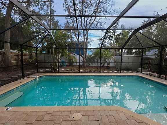 Discover your dream rental in this beautifully restored gem located just steps from the Intracoastal Waterway and the scenic Pinellas Trail. Perfectly positioned between the waterfront and Delightful Downtown Dunedin, this fully furnished 3-bedroom, 2-bath home blends timeless charm with modern updates. Inside, you'll find original hardwood floors, custom-built cabinetry, and a cozy natural gas fireplace that exude classic character. The renovated kitchen features quartz countertops, stainless steel KitchenAid appliances, and soft under-cabinet LED lighting. The bathrooms showcase elegant marble finishes and a vibrant Mexican-tiled walk-in shower. Step outside to your private tropical oasis with a heated saltwater Pebble Tec pool, large screened lanai, and non-slip tile perfect for relaxing or entertaining. Smart home features include a Nest thermostat, recessed LED lighting, ceiling fans throughout, and EV charger pre-wiring. Located in a golf cart-friendly neighborhood with no HOA or deed restrictions, residents enjoy proximity to Edgewater Park, beaches, shops, and local dining. Whether you're enjoying morning walks along the water or sunset swims in your private pool, this home offers the ideal Florida lifestyle. Schedule a showing.