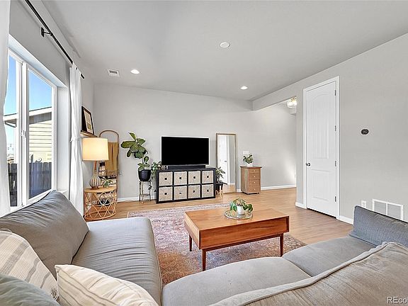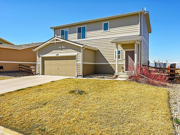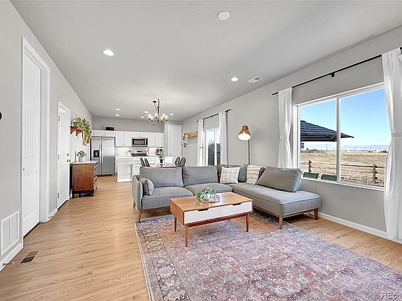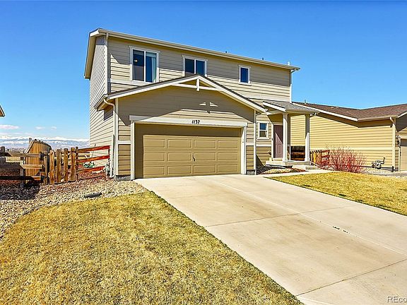 Don't miss out on this beautiful Autumn Valley Ranch home with million dollar mountain views! You will love sitting on your back patio every evening taking in unbelievable sunsets over the snow covered peaks of the Rocky Mountains. Inside you will find an open floorplan on the main floor with 9ft ceilings and updated luxury vinyl plank flooring. The kitchen boasts ample storage space with white cabinets and pantry, SS appliances and a expansive island with additional seating. The family room, dining area and kitchen flow effortlessly together perfect for your parties & gatherings throughout the year. The spacious primary suite features a 4pc bath, walk-in closet and spectacular mountain views. There are 2 additional bedroom that share a full bath and convenient upper floor laundry room. Outback there is a gorgeous paver stone patio, fully fenced yard and raised garden beds. And best of all, the home backs to City of Dacono open space - so no neighbors behind! Unobstructed mountain views, AC, 2 car garage, all appliances included, brand new roof with transferable warranty, no metro district tax - this home has it all. Hurry!