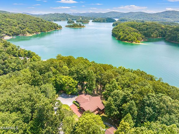 This beautiful lakefront 4BR/4.5BTH home is situated on a 4.04 acre lot with over 460' of frontage.This energy efficient home boasts an open and spacious floor plan with beautiful views of the lake. The property is located on deep year-round water. ATV path provides easy access to the lake for swimming, fishing, and boating. The house offers stunning open views of the lake from most rooms & screen porches as well as your large porches with composite decking, The main level of the house features a large family room with fireplace, master bedroom & additional bedroom & bath, Kitchen with island & lot of cabinet space. There are two additional bedrooms & bathrooms located downstairs off the recreational room with buckstove. The open floor plan creates a comfortable and inviting atmosphere that is perfect for entertaining guests or relaxing with family. Large detached heated & Cooled garage with half bath. Lots of room to park on you gently sloped, paved/paver driveway. and concrete one slip dock. RV pad with electric & sewer hook up. Irrigation along the drive down to the house.