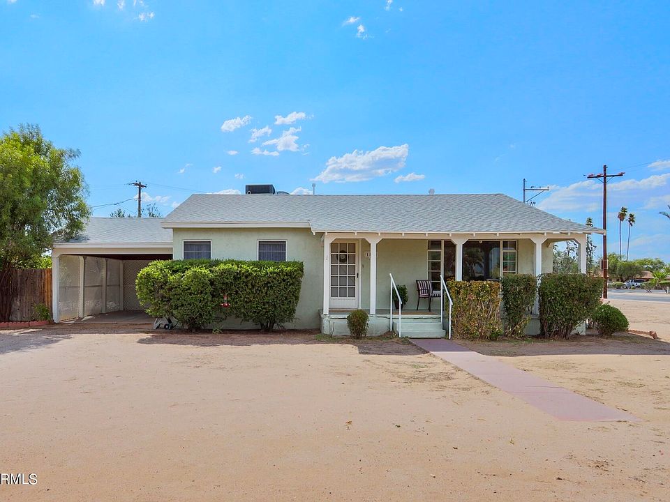 A Charming Classic in a no HOA neighborhood! Jump at your chance to own this well-maintained home in Casa Grande's Evergreen Historical District. The home is situated on an extra large corner lot with RV parking, ample yard space surrounded by mature trees providing shade and privacy. The home has fresh exterior paint and a new roof. Inside, enjoy the craftsmanship of custom woodwork, new carpeting, and large bonus room that could be used as a rec room, den, 3rd bedroom, or 2nd living area. Enjoy the pool, splash pad, walking track, and sports fields at the nearby Carr McNatt park. This home comes complete with included washer, dryer, and refrigerator!