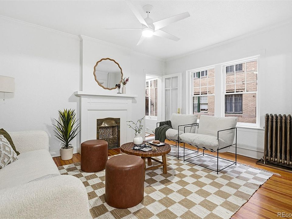 Discover historic Denver charm in this beautifully restored condo in the heart of Capitol Hill. Just blocks south of the Colorado Capitol building, this main-floor residence blends early 1900s character with thoughtful updates and surprisingly flexible living space. A welcoming foyer opens into a spacious dining/living area with tall ceilings, rich architectural details, and room to entertain. The updated galley kitchen features a highly functional layout, stainless appliances, new cabinetry, and great storage.