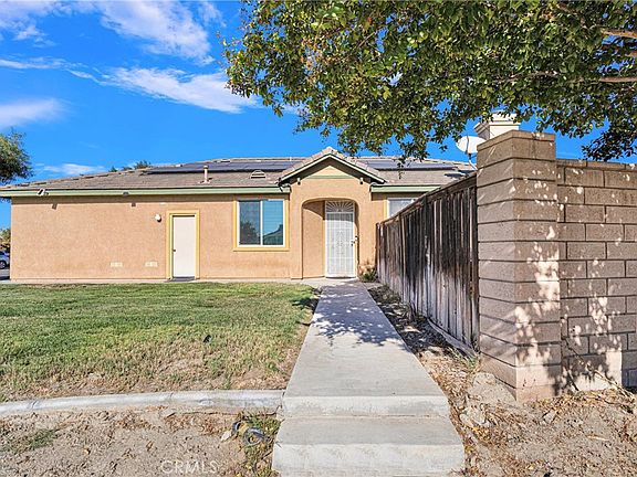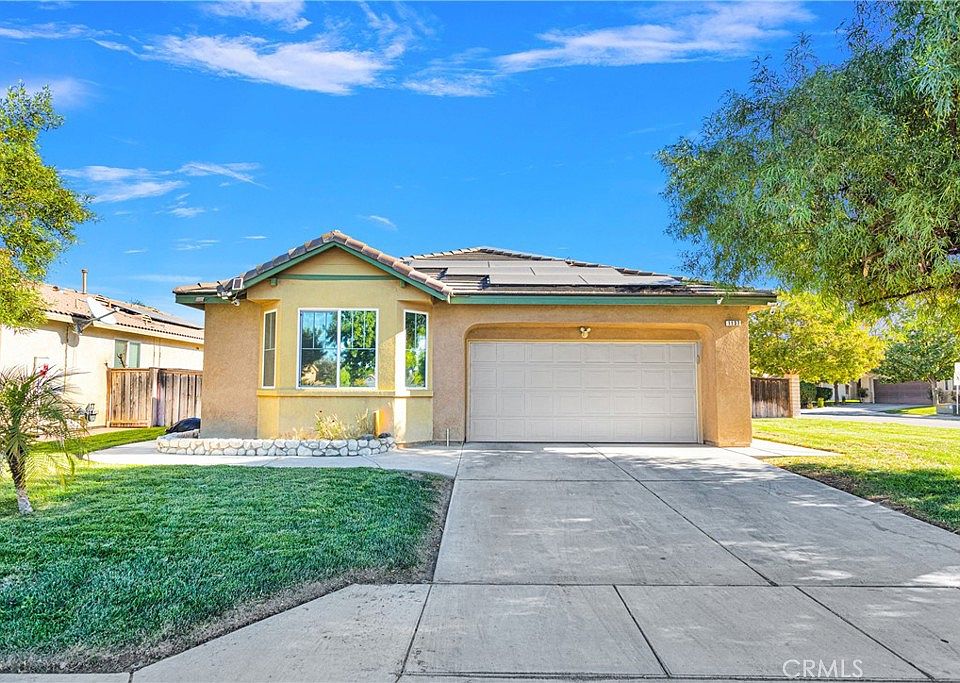 Welcome to this beautiful corner lot home offers 3 bedrooms and 2 bathrooms across a spacious 1,740 sq. ft. As you step inside, you're greeted by a charming dining area that flows seamlessly into the spacious family room, complete with a cozy fireplace. The upgraded kitchen is a true highlight, boasting brand-new quartz countertops, freshly painted cabinets with black hardware, a deep stainless steel sink, dishwasher and new stainless steel appliances, including a oven, and microwave. It also has a movable island with quartz countertops. The primary bedroom is generously sized, offering an en-suite bathroom with double sinks, a separate shower and tub, a walk-in closet, and a private toilet area. The second bedroom is equally spacious with plush carpeting, while the third bedroom with new vinyl flooring. The second bathroom offers a combined shower and tub for added convenience. Throughout the home, you'll find plantation shutters. Step outside to a well-maintained backyard, featuring a durable aluminum-covered patio witha ceiling fan, landscaped with stamped concrete flooring, and lush grass. Additional features include solar panels for energy efficiency and proximity to a park, shopping centers, restaurants, schools, and easy access to the highway, making this home as convenient as it is beautiful. Don't miss out on this exceptional opportunity!