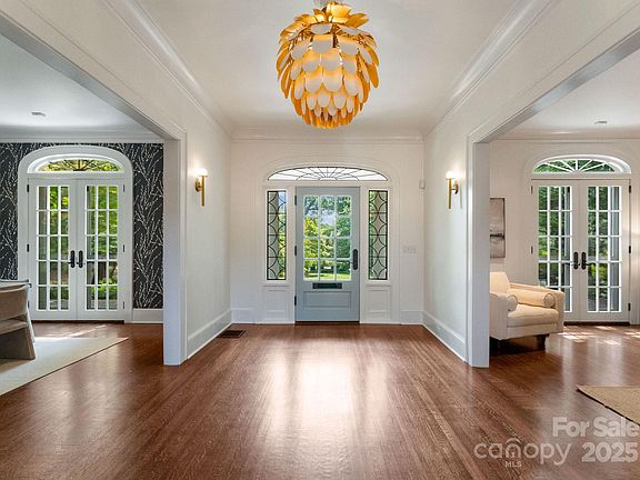 A rare opportunity to own an esteemed Charlotte landmark—this 1987 ASID Designer House and Thomas Moore home artfully blends 1925 Colonial Georgian architecture with today’s modern comforts. Beautifully renovated by Craftsman Construction, the residence is set on a park-like .82-acre lot along Queens Road West. Classic details include a slate roof, neoclassical columns, welcoming front porch, and multiple French doors. Inside, a wide central foyer opens to elegant living and dining rooms, a sun-filled keeping room, paneled study, bar, and third-floor playroom. Two office spaces and a bright kitchen ensure functionality for modern living. High ceilings, intricate moldings, and multiple fireplaces highlight the home’s timeless character. Outdoors, enjoy private gardens with a pond, guest house, pool, and pool house. This landmark residence reflects Charlotte’s heritage while embracing contemporary enhancements in a most prestigious setting!