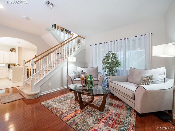 Welcome to Martin's Crossing in the heart of Stuart. Ideal location near pristine beaches, top-rated Martin County Schools, and Indian River State College. Quality built Lennar home, impact windows, concrete construction on first and second floor. Dual zone A/C. Spacious eat-in kitchen, raised panel cabinets, Corian counters, and stainless appliances. Plenty of privacy and room to spread out with formal dining and living area, plus kitchen and great room. Beautiful glass slider doors open to a screened, covered patio with a lake view and tropical landscaping. Five spacious bedrooms, four full baths, and three-car garage. Your master suite sanctuary has a Jacuzzi tub, separate shower with dual shower heads, dual sinks and enormous walk-in closets. Community pool, club house, tennis courts.