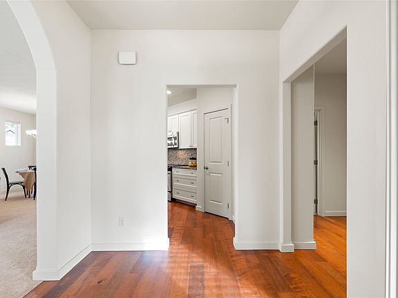 Pristine single-level home in The Villages of Garrison Creek with easy-access level entry from garage. Open floor plan is flooded with natural light in adaptable living and dining areas, plus a 3rd bed/office with French doors. Upscale kitchen features deluxe appliances, pantry, and easy flow to the covered patio. Restful main suite includes walk-in closet with laundry access, double vanity, soaking tub, shower, natural stone finishes and private patio access. Stay organized with pantry, roomy laundry, and hall closet. Enjoy this garden setting with park view from covered patio in fully-fence yard and another park in front. HOA ($226/mo) includes front yard care, snow removal, care of community parks and 3+ miles of walking trails.