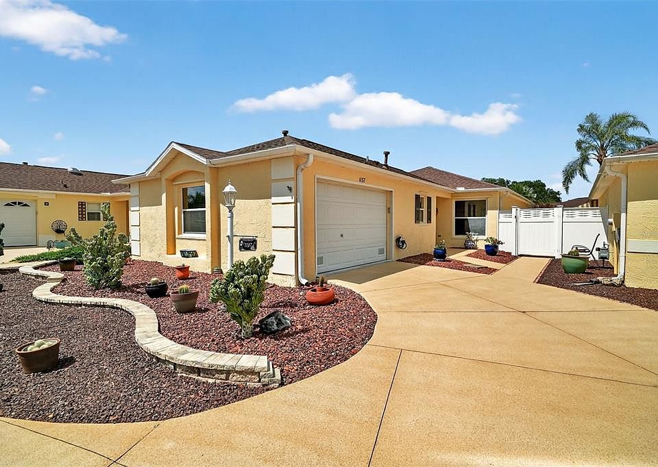 Outstanding 3/2 Foxglove Model with a Pool No BOND Located in the Prime location of the Hampton Villas Between 466 & 466A, AC & Roof 5 Yrs old Tile Flooring in all main Areas, Third Bedroom/Den Luxury Vinyl. Kitchen has Custom Laminate Counter Tops Newer SS LG Appliances Open to Dining and Living Room. Primary Bedroom has Tile flooring and In-suite Bath Enclosed Lanai Sliders to Large in-Ground Pool Bird Caged New Pool & Filter, Garage Flooring Just Painted and Parking For Car & Golf Cart. Home Walking Distance to Two Community Pool and Mail Station also between Mallory, Cane Garden CC & Lake Mona Center this home has it all some Furniture Available. Call to view this great Pool Home