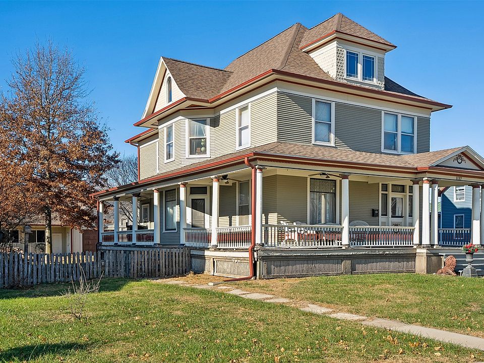 This historic Grinnell home and carriage house are what dreams are made of! The details and woodwork are exquisite. From it's seven color paint scheme to hand painted murals, its a must see. In addition to the 4 bedrooms on the second floor, the attic has been fully remodeled into a large primary bedroom and bath with beautiful windows on all sides. The 1500 sq ft carriage house in the back serves as a shop & garage with space for anything you may need to store. Come and see this historic beauty.