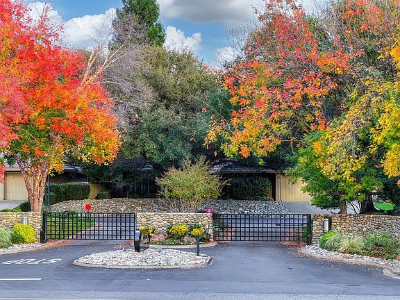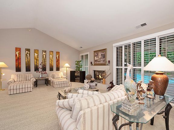 Welcome to prestigious gated Huntington Village. Behind the gates you will find a beautiful and immaculate single-story home showcasing one of Robert Powell's most coveted models. The double door entrance into this home takes you into the elegant living room complete with cathedral ceilings and custom plantation shutters. There are three well designed fireplaces, one in the living room, the primary suite and one in the spacious family room complete with a blower. The family room has attractive wood flooring. The private backyard has multiple sitting areas, a pool and relaxing spa. For the ultimate in entertaining the elegant dining room has a wet bar, wine rack, and custom lighting. The roomy kitchen has double ovens, granite countertops, island, and a gas cooktop. As you walk through this beautiful home you will notice the high ceilings and the true beauty of this exceptional home. The spacious primary bedroom has cathedral ceilings, fan, plantation shutters & sliding doors leading out to the delightful backyard. The primary bath has a spacious walk-in shower and double sinks. One of the bedrooms is set up as a home office with custom doors and exquisite wood flooring. The layout is designed for comfortable living at its finest. A home for the most discriminating buyer.