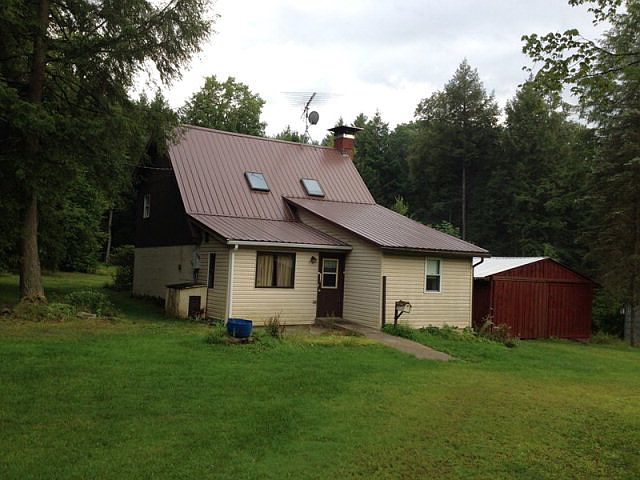 Great location. Close to Forest. Nestled in the woods. Private site with large open floor plan. Great room to expand out in and enjoy the fires in the fireplace. Two outbuildings with electric for all your toys. Make this private space your own.