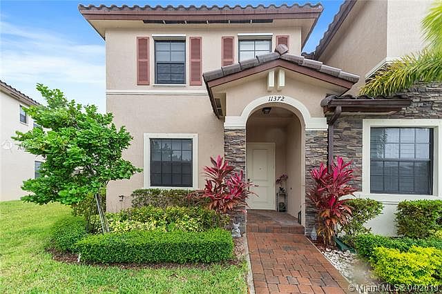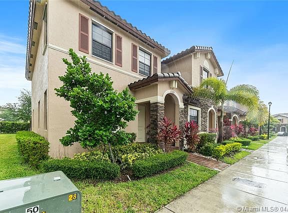 2-Story Corner Townhouse with (2)parking spaces, rear fenced back yard, high ceilings, kitchen open to family room with stainless steel appliances and granite counters, tile floors downstairs & carpeted upstairs, electronic tankless water heater, washer & dryer upstairs. Full size walk-in closets, hurricane shutters, move-in condition, low HOA fee $106/month includes pool,gym,roof,building exterior, patrolled security.Also included a Vivint alarm system! Excellent School District!