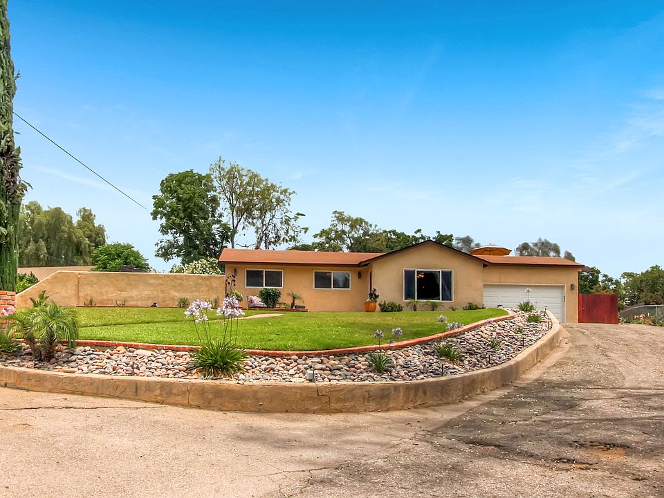 Beautiful Eucalyptus Hills home! Designer kitchen featured on 2014 SDH&G Kitchen & Bath Home tour. Private backyard w/covered patio wired for media & rooftop view patio! Hardwood floors in living room. Large family room w/ wood-burning fireplace. In-house laundry, heat & air, dual pane windows, in-wall speakers, H20 softener. Mini-Orchard w/12 varieties of fruit trees & veggie garden. Sprinklers & drip on timer! Extra large 2 car garage, small barn w/storage for riding lawn-mower, etc. Room for RV & boat.