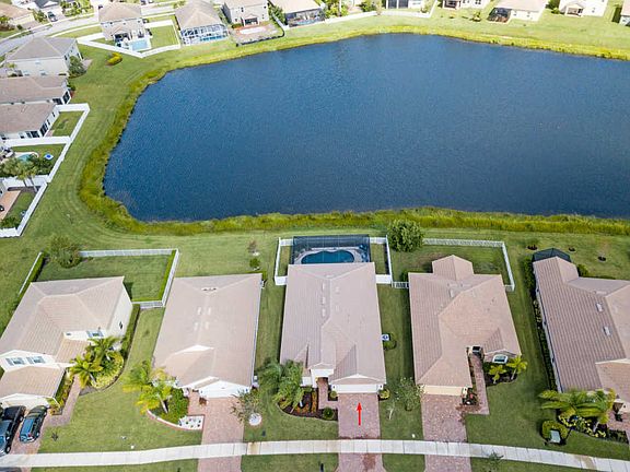 Better act fast on this charming 3/2/2 with pool, screen enclosure, fully fenced, lots of privacy and peaceful, expansive lake views. Home newly built 2015 with full accordion shutters, pool and fence added 2016. Wonderful open floor plan with large kitchen island overlooking the great room and dining area. Kitchen features 42' cabinets, granite, stainless steel appliances and eat in area which overlooks the pool and lake. Master bedroom is enormous!!! Additional length can be used for sitting area or small office area. Two walk in closets have full built in shelving. 2 additional bedrooms are nicely separated from the master for privacy. Gated community across the street from one of Tradition's most beautiful lakes & park. Walk to Traditional shops, restaurants, parks & activities.